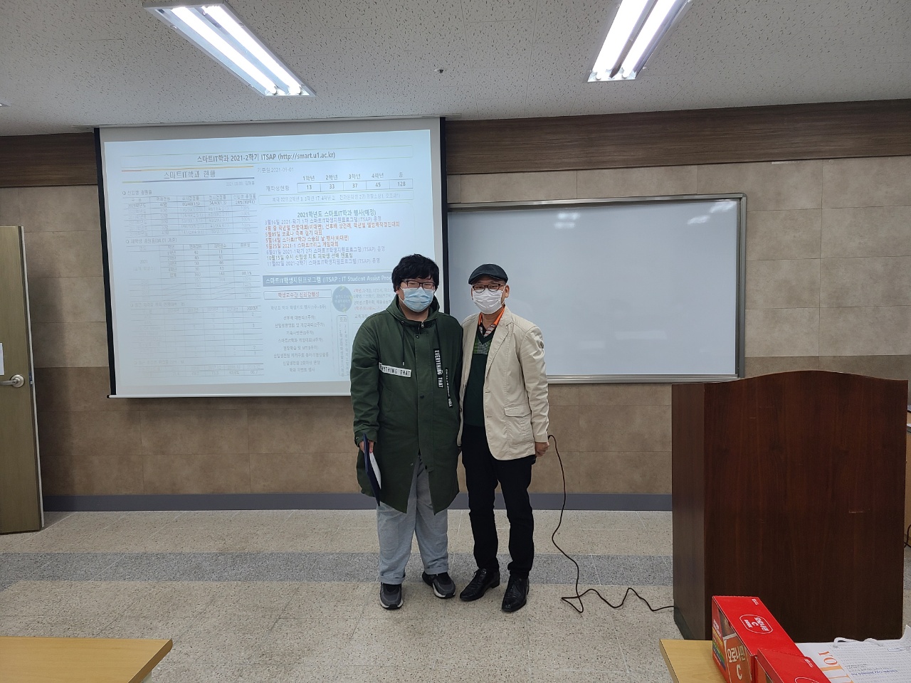 ■ 2022-2학기 스마트IT 학생 지원 프로그램(ITSAP : IT Student Assist Program) 행사 안내 - 날짜 : 2022.11.29(화) 14:00 ~ 15:00 - 참석 : 학생 - 학회장, 학년대표(4명), 부학회장, 총무, 차기 학회장, 관련 학생들 교수 - 김재홍, 김문정, 김성익 - 내용 : IT 커리어 관리 프로세스, 학생들 의견 청취, 교육 과정 개선 활동 및 재학생 관리, 2023-1학기 학과 운영 방안, 안전 교육 특히 종강 모임에 대한 안전 교육 등 ■ 2022.11.29 ITSAP 행사 결과 - 20 여명의 재학생들과 학과 전임 교수가 참석하여 이번 학기 학과 운영 및 강의에 대한 의견 교환 - 현 학생회 임원 인사 - 차기 학과 학회장 소개 - 이번 학기 학과 행사 시상식 등