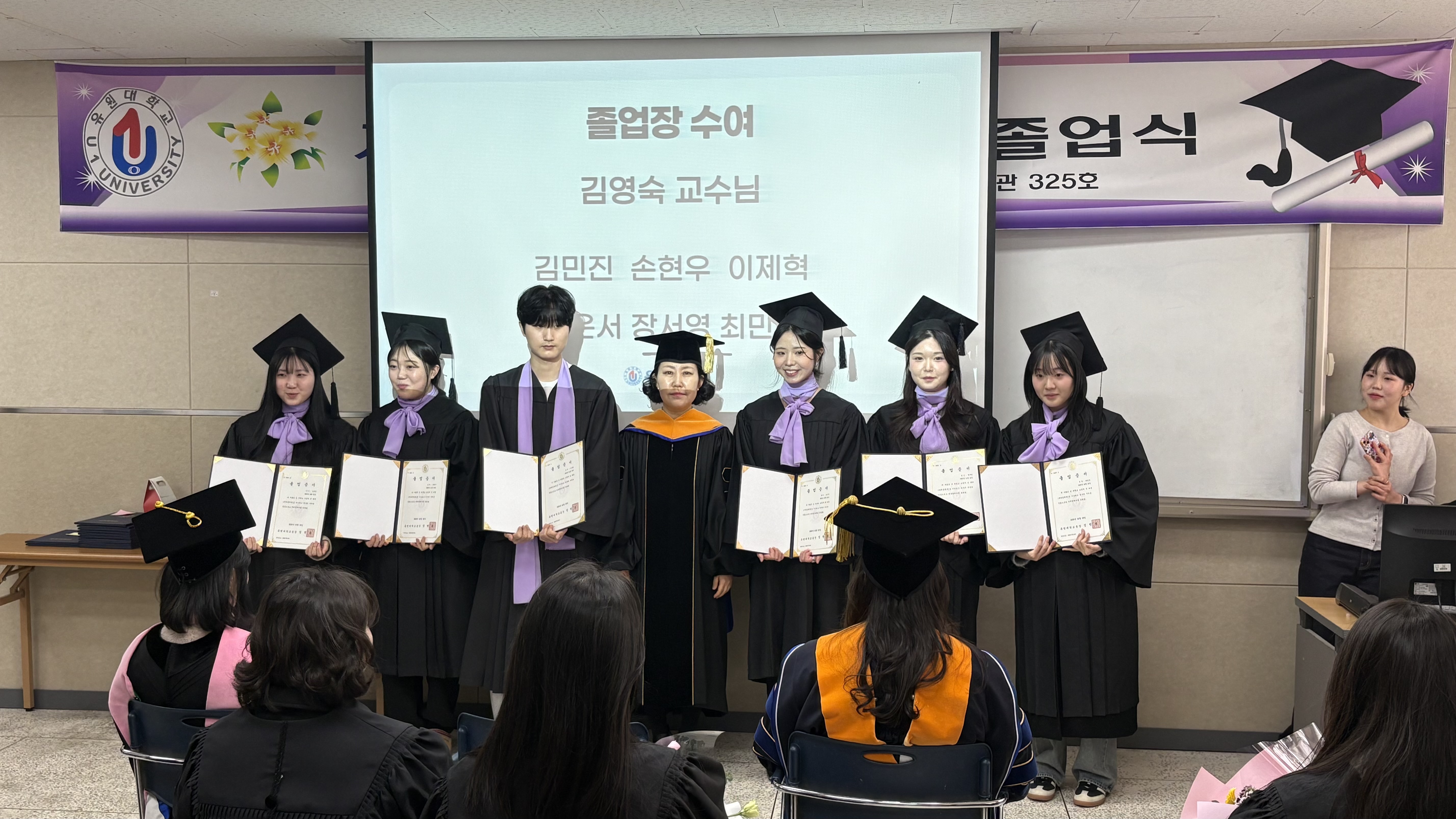 졸업식에는 졸업생과 함께 학부모님, 2,3학년 재학생과 학과 교수진이 참여하여 졸업생들을 축하하였습니다.