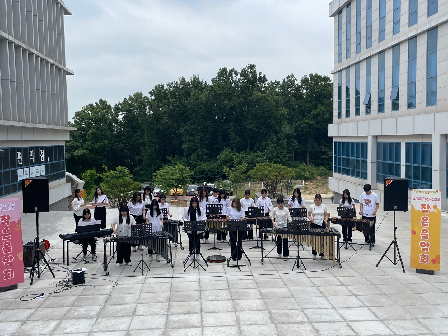 신나는 콰이강의 다리 연주를 시작으로, 유아들이 좋아하는 동요(상어가족, 뽀로로, 바나나 차차, 타요, 폴리), 스토리 뮤직(미운오리새끼, 개미와 베짱이), 카혼 연주 등 다양한 곡으로 1 ,2부 2회에 거쳐 진행되었습니다. 작은 음악회는 재학생 모두와 교직원 및 지역민들에게 의미있는 문화예술적인 체험을 제공하는 역할을 하며, 예비영유아교사들의 감성과 소양을 기를 수 있는 소중한 경험이 되었습니다.